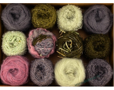 В Magic Gift Pack входит 12 различных моточков по 20-30гр., это Boucle, Brushed, Chunky Mohair, Ribbon и Bead.