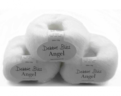 Кид мохер на шелке Debbie Bliss Angel купить можно для вязания очень мягкой, легкой, теплой, шикарной одежды. Пряжа нежнейшая, шелковистая, кид мохер с шелком отлично подходит для нежных детских вещей.