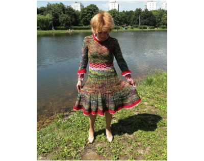 Мы связали платье из шерсти мериноса Малабриго Меча, которое вы видите на фото, вместе с другими фотографиями одежды из этой секционной ровницы.