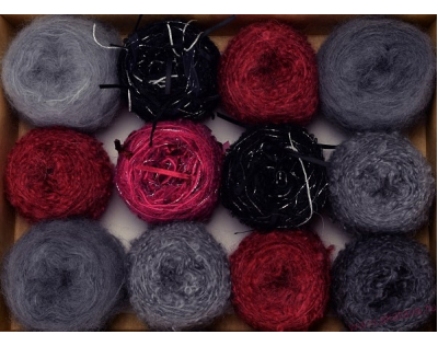 В наборы из пряжи Adele’s Mohair Gift Pack входят двенадцать мягких моточков по 25гр., это Boucle, Brushed Medium и Ribbon.