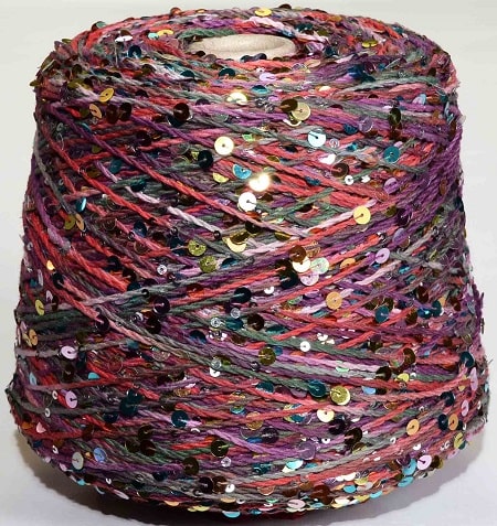 Уникальная пряжа с пайетками двух размеров и множеством радужных цветов.