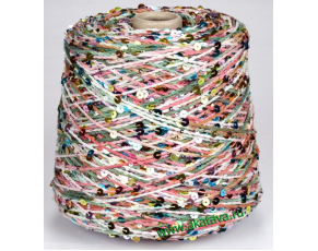 Уникальная пряжа с пайетками двух размеров и множеством радужных цветов.