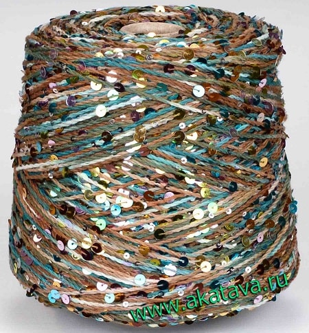 Уникальная пряжа с пайетками двух размеров и множеством радужных цветов.