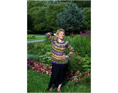 Вы также можете видеть на фото, что наш лен прекрасно сочетается с кружевами. Наша блузка связана из трех разных цветов льна Karin Oberg Kalinka: Ametist, Lime и Guldockra, просто на одном цвете не смогли остановиться!