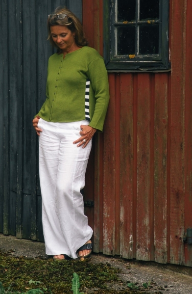Вы также можете видеть на фото, что наш лен прекрасно сочетается с кружевами. Наша блузка связана из трех разных цветов льна Karin Oberg Kalinka: Ametist, Lime и Guldockra, просто на одном цвете не смогли остановиться!