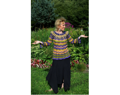 На женскую блузку 46 размера нужно купить всего три моточка льняной пряжи Karin Oberg Kalinka, спицы 3,5мм.