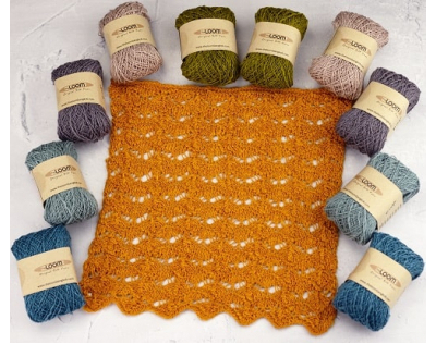 Пряжа скручена из нескольких нитей разной степени крутки и как следствие разной степени утолщения. Таким образом создается эффект неоднородности вязаного плотна.