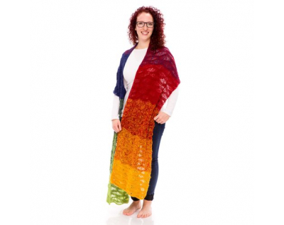 На дополнительных фото представлены модели из секционной пряжи Garnmanufaktur Maya: палантин, бактус, платье мини, поэтому ее можно купить для вязания самых разнообразных смелых проектов.