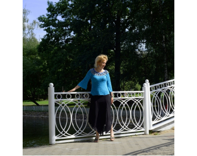 На наших дополнительных фотографиях вы можете посмотреть летнюю шелковую блузку из натурального шелка THE LOOM  Risoni. Блузка достаточно свободная, вязалась по кругу. При соединении с рукавами, кокетка вязалась без убавлений, собрана на резинку и украшена кружевом. Расход на кофту получился 8 мотков. Если вязать по фигуре на 46-й размер, без кокетки, с рукавами 3/4, достаточно 6 мотков. Рекомендуемый размер спиц 3.25мм, однако, блузка вязалась на спицах 2.75мм, лицевой гладью. Кофта очень комфортна в носке, одежду из такого шелка вы будите носить с огромным удовольствием!