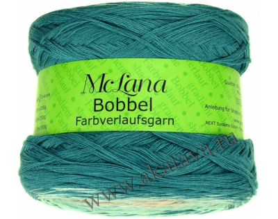 На дополнительной фотографии представлена шаль, связанная из этой секционной пряжи. Как вы видите McLana Bobbel пряжа с достаточно длинными секциями, шаль выполнена крючком всего из одного боббела, цвет № 9220.