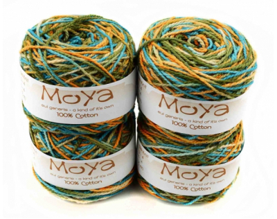 Пряжа MoYa Variegated уникальна, каждый моточек не повторим! Эти яркие моточки изготавливается в Кейптауне, окрашивается и перематывается вручную. Секционная пряжа хлопок MoYa Variegated изготовлена из 100% хлопка, структура нити позволяет делать из нее вязаные проекты спицами и крючком (3,5-4мм).