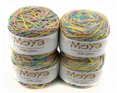 Пряжа MoYa Variegated уникальна, каждый моточек не повторим! Эти яркие моточки изготавливается в Кейптауне, окрашивается и перематывается вручную. Секционная пряжа хлопок MoYa Variegated изготовлена ​​из 100% хлопка, структура нити позволяет делать из нее вязаные проекты спицами и крючком (3,5-4мм).