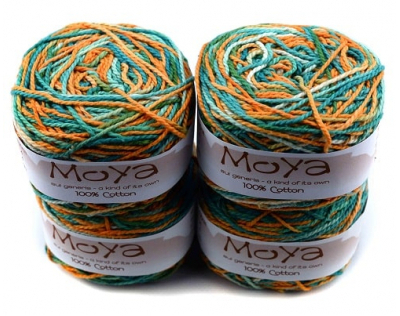 Пряжа MoYa Variegated уникальна, каждый моточек не повторим! Эти яркие моточки изготавливается в Кейптауне, окрашивается и перематывается вручную. Секционная пряжа хлопок MoYa Variegated изготовлена из 100% хлопка, структура нити позволяет делать из нее вязаные проекты спицами и крючком (3,5-4мм).