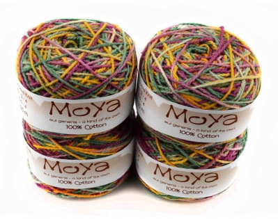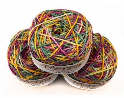 Пряжа MoYa Variegated уникальна, каждый моточек не повторим! Эти яркие моточки изготавливается в Кейптауне, окрашивается и перематывается вручную. Секционная пряжа хлопок MoYa Variegated изготовлена из 100% хлопка, структура нити позволяет делать из нее вязаные проекты спицами и крючком (3,5-4мм).