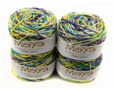 Пряжа MoYa Variegated уникальна, каждый моточек не повторим! Эти яркие моточки изготавливается в Кейптауне, окрашивается и перематывается вручную. Секционная пряжа хлопок MoYa Variegated изготовлена из 100% хлопка, структура нити позволяет делать из нее вязаные проекты спицами и крючком (3,5-4мм).