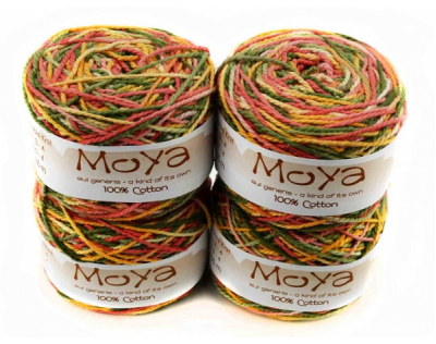Пряжа MoYa Variegated уникальна, каждый моточек не повторим! Эти яркие моточки изготавливается в Кейптауне, окрашивается и перематывается вручную. Секционная пряжа хлопок MoYa Variegated изготовлена из 100% хлопка, структура нити позволяет делать из нее вязаные проекты спицами и крючком (3,5-4мм).