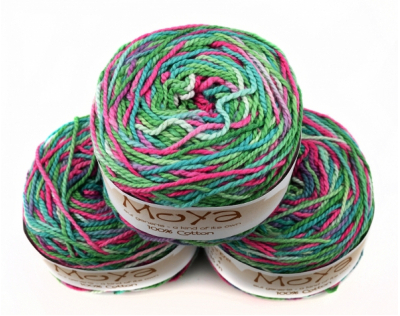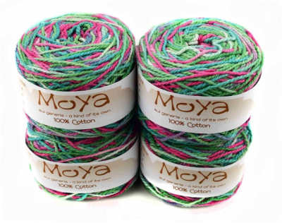 Пряжа MoYa Variegated уникальна, каждый моточек не повторим! Эти яркие моточки изготавливается в Кейптауне, окрашивается и перематывается вручную. Секционная пряжа хлопок MoYa Variegated изготовлена из 100% хлопка, структура нити позволяет делать из нее вязаные проекты спицами и крючком (3,5-4мм).